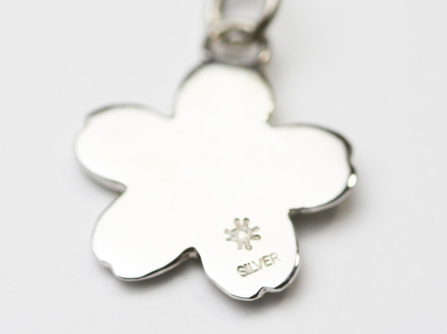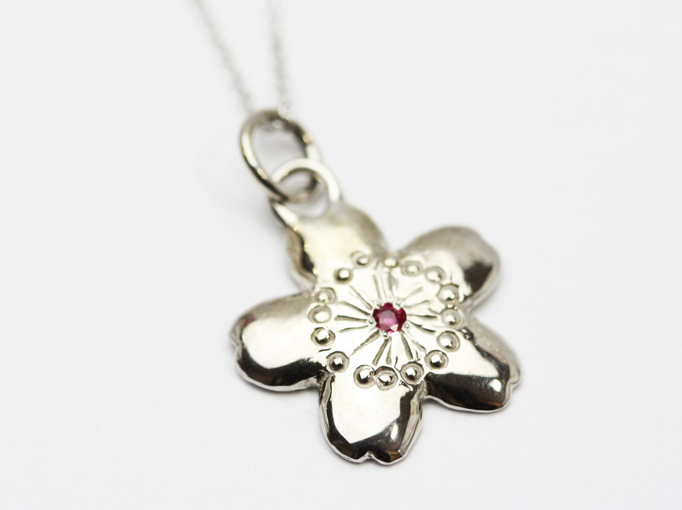 山桜をイメージしたアクセサリーです。中央に誕生石をお入れできます。裏側には10文字までお好きな文字(英語、数字)で刻印します。
