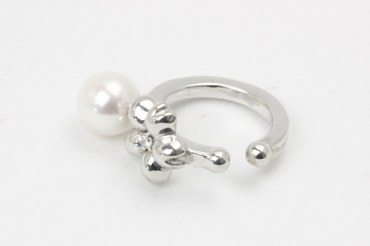 ダイヤモンド入、真珠と「桜」のイヤーカーフ