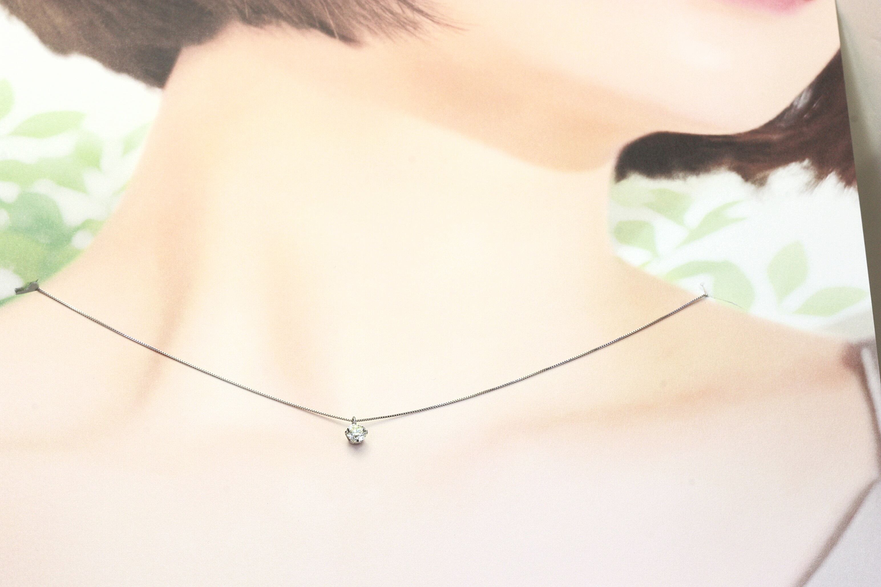0.30ctのダイヤモンドはやや小ぶりながらも、繊細な装いにぴったりの存在感を放ちます。首元にさりげなく優雅さをプラスし、華やかな輝きで周囲を魅了します。