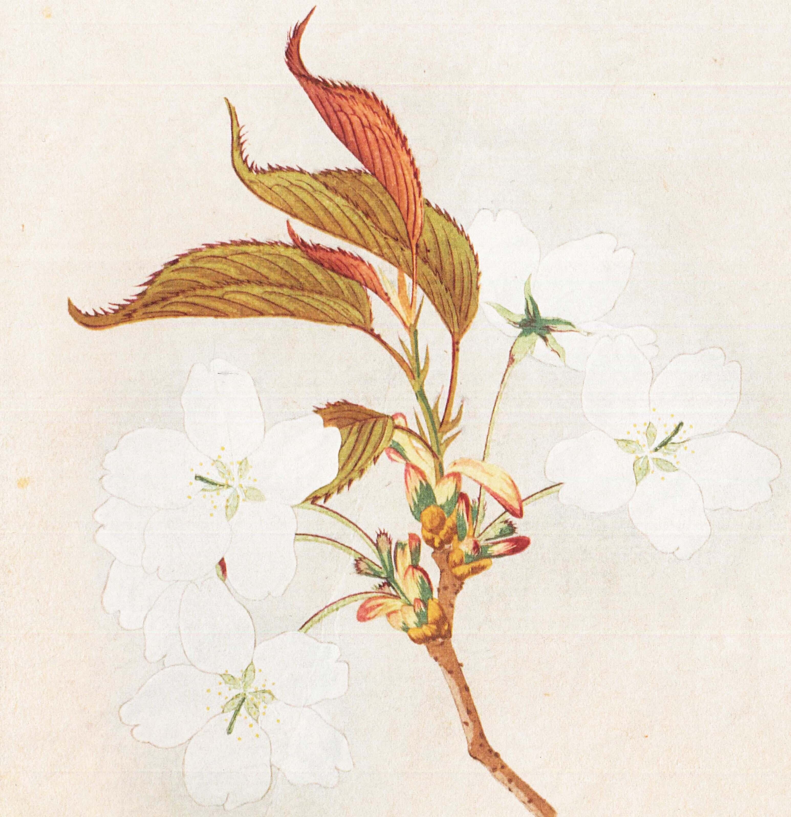 初見桜は芽は樺色、花は白く、花こう(花を支える柄)が長いです。桜川市では最初に開花する山桜です。花径28㎜です。